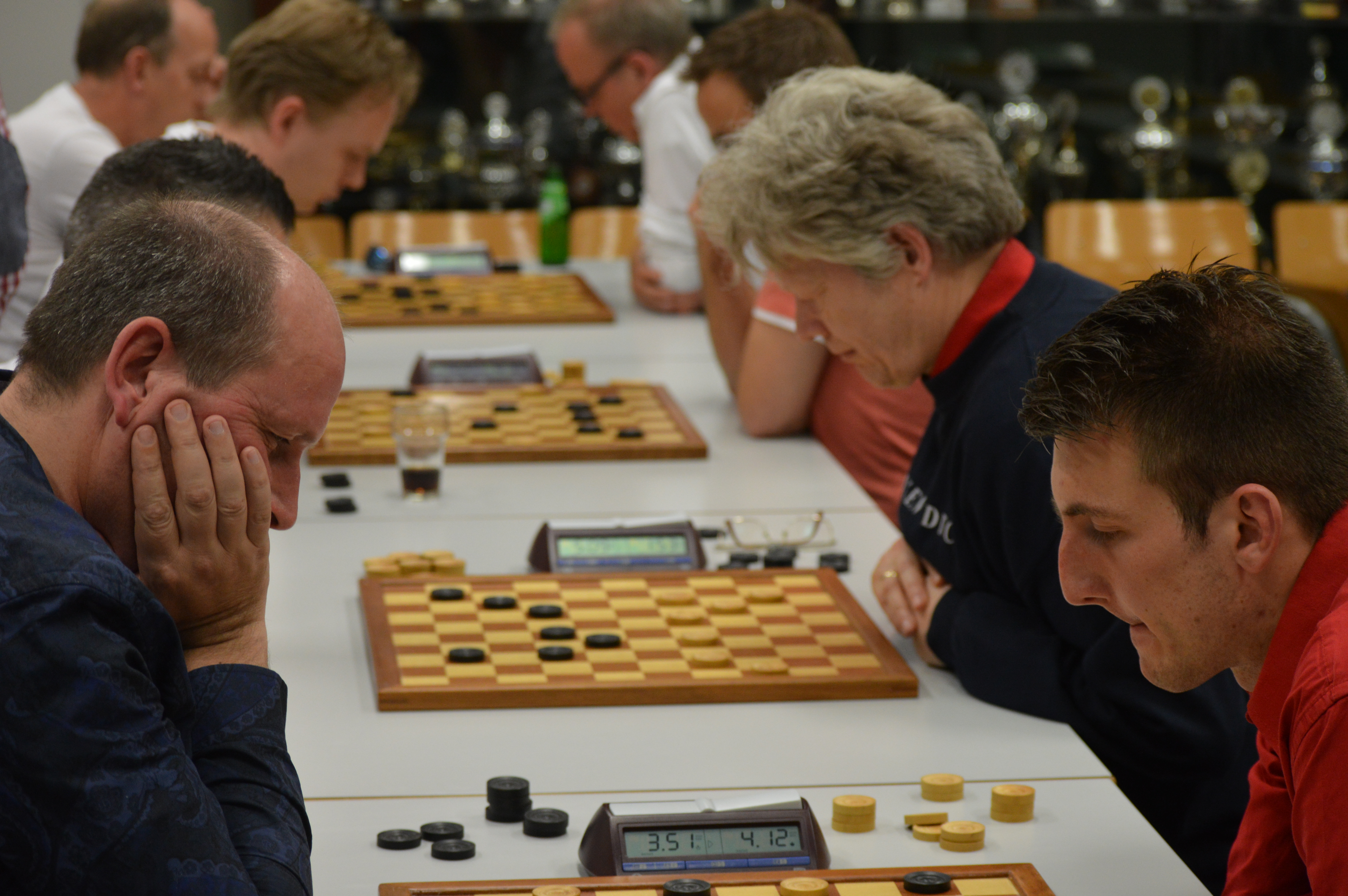 We begonnen tegen VBI Huissen 2 en dat begon goed: ik won na zo’n 20 zetten een schijf tegen Rob Schrooten en later de partij, zie fragmenten. Maar daarna verloor Hilko zijn eindspel tegen Emiel Leijser net wél, Hans won zijn eindspel tegen Marcel Janssen net níet. En Jan Ekke? Die won zijn eindspel tegen Dirk Joosten net wél. Tijdverdeling is belangrijk, zeker bij rapid; want, zoals Aleksej Domtsjev eens schreef (zij het in het Russisch): ‘Alle wegen leiden naar het eindspel’! Zo, 5-3 winst.