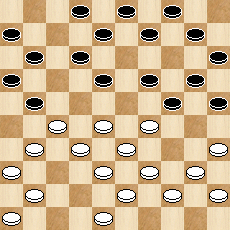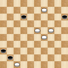 Rob Schrooten – Wouter Sipma, eerste ronde. 1. 32-28 16-21 2. 37-32 11-16 3. 41-37 6-11 4. 34-29 20-25 5. 39-34 21-26 6. 44-39 1-6 7. 50-44 17-21 8. 47-41. Deze openingsstand heb ik de laatste tijd zo’n tien keer gehad met zwart in allerlei wedstrijden (met veel mogelijke zetverwisselingen). Wit speelt zijn laatste tempo uit en dwingt zo bij zwart een verzwakking af. 8. … 14-20(!) 9. 29-23 18×29 10. 34×14 10×19. Nu blijft wit met een zware lange vleugel zitten en moet daar iets voor bedenken; wit moet de beslissingen nemen terwijl zwart wacht. Dat is ideaal voor als je spel wilt krijgen tegen rustige spelers; vooral Valneris heeft er veel mee geëxperimenteerd (met onder andere een mooie overwinning op Ron Heusdens) en ik zou het dan ook de ‘Valneris-opening’ noemen. Ook in deze partij heb ik snel succes. 11. 31-27 19-24 12. 40-34 12-18 13. 44-40 7-12 14. 49-44 5-10 15. 34-29 13-19 16. 37-31 26×37 17. 42×31. Zie diagram 1. Deze volgorde van zetten had ik nog niet eerder gezien, dus ik moest wat improviseren. 17. … 9-13!? Deze zet is niet de sterkste, maar gaat voor goedkoop succes. Zwart wil immers 31-26 liever niet toelaten, in verband met vereenvoudigingen. In de partij kwam die toch en ik won op standaardwijze een schijf: 18. 31-26? 24-30! 19. 26×17 (het maakt niet uit hoe wit slaat, altijd volgt 30-34 met 1-om-2) 11×31 20. 36×27 30-34 21. 39×30 25×23 en na nog 14 wederzijdse zetten gaf wit op.