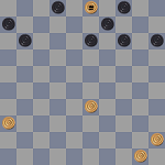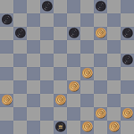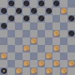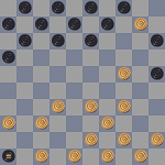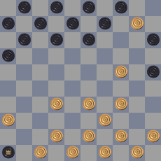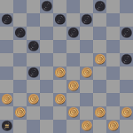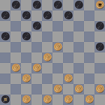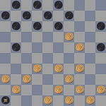 14. 33-28 46-41 15. 24-19 13×24 16. 10-5 24-29 17. 34×23 11-17 18. 42-37 41-46 19. 36-31 9-13 A 20. 39-34 7-11 21. 31-26 3-9 22. 23-19 13×24 23. 28-23 24-29 24. 44-40 29×18 25. 37-31 46×10 26. 5×3 15-20 27. 34-30 25×34 28. 3×39 17-22 29. 39×17 12×21 30. 26×17 11×22 *