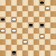 Dan nu over de naar de eerste rapidpartij: Georgiev probeerde in de eerste partij de Keller-opening met wit, maar dan met 4. 49-44?! in plaats van het gebruikelijke 4. 50-44. Daarmee boekte hij al in 1991 als jonkie een opmerkelijke winstpartij mee tegen oud-wereldkampioen Dibman! Ook speelde hij het tegen Jeroen van den Akker in de BaltCup 2008. In sommige omsingelingssystemen is het een voordeel om de formatie 50-44-39 nog te hebben in plaats van 49-43-38, maar om daar al zo vroeg een beslissing in te nemen is nogal ongebruikelijk. Een ander (en misschien wel belangrijker) doel van de zet is om ’uit de theorie’ te komen. Deze opening zal een terugkerend thema worden in de match, met een duidelijke uitslag…