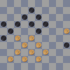 1. 40-34 9-14 2. 33-28 22×33 3. 39×28 14-20 4. 34-29 2-7 5. 28-22 25-30 6. 21-16 3-8 7. 22-17 30-35 8. 29-23 20-25 9. 23-19 25-30 10. 19-14 7-12 11. 14-10 12×21 12. 16×27 30-34 13. 10-5 34-39 14. 44×33 35-40 15. 5-10 40-45 16. 10-14 8-12 17. 33-28 12-18 18. 14-3 *