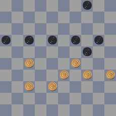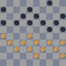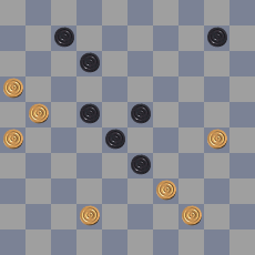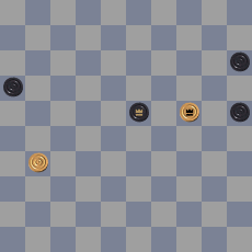 49: 27-22? Verliest. De stand was gelijkwaardig (ook 49: 34-30 is remise). Ander voorbeeld 49. 37-31 17-21 50. 38-32 21-26 51. 27-21 26×30 52. 21-17 24×33 53. 35×22 *
