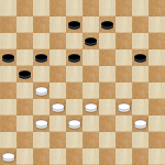 48. 27-21! 26×30 49. 21×34. De overgebleven stand wint scherp! 16-21, 46-41 (wit heeft telkens maar 1 winnende zet) 21-27, 41-37, 13-19, 34-30, 8-13, 30-24!, 19×30, 29-23 met 3-voudige oppositie. In de partij won ik anders op dezelfde manier: 49. … 13-19 50. 34-30 8-13 51. 30-24! 19×30 52. 29-23+